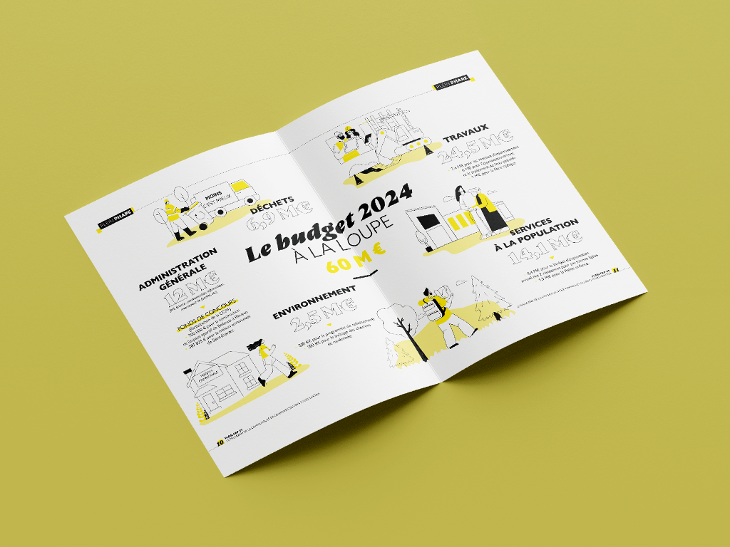 Double page du Magazine Plein Cap, conception ©D'une idée l'autre Double page du Rapport d'activité 2024 de Rennes Métropole, conception ©D'une idée l'autre La complexité du fichier tu allégeras Des fichiers de création trop lourds peuvent vite devenir un cauchemar logistique et technique. Évite qu’ils pèsent une tonne. Supprime les calques fantômes, fusionne ceux qui ne servent plus à rien, et oublie les images en ultra HD si tu n’imprimes pas une bâche de stade. Simplifie aussi les tracés vectoriels tarabiscotés qui rendent fou ton ordi et l’imprimeur.